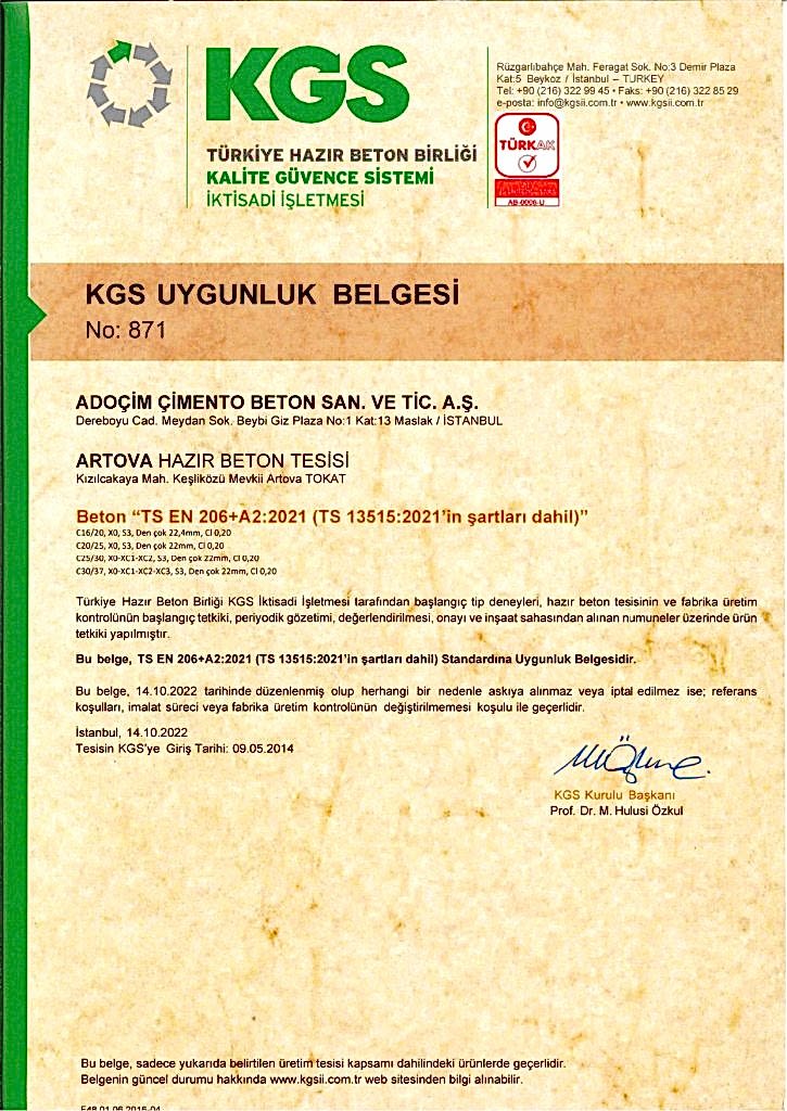 • Artova Hazır Beton Tesisi