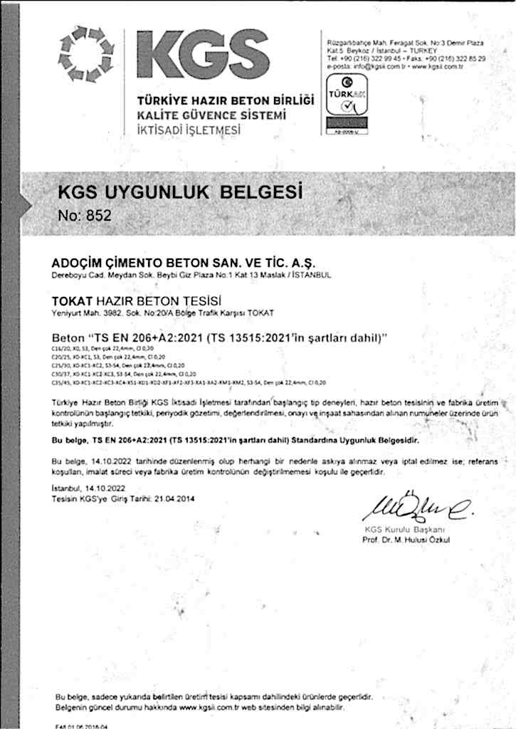 • Tokat Hazır Beton Tesisi