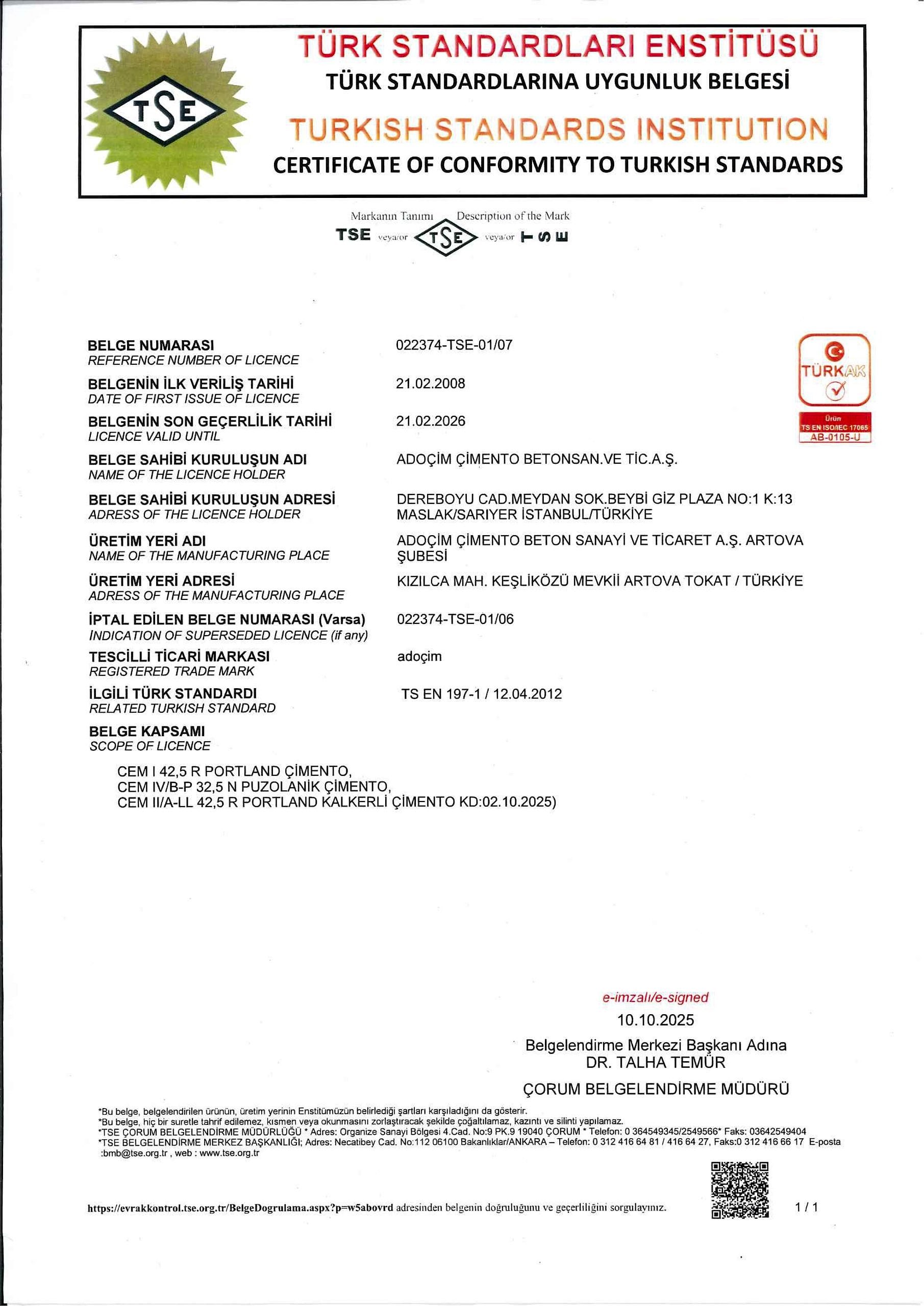 ADOÇİM Çimento Beton Sanayi ve Ticaret A.Ş. Çimento, Hazır Beton ve Teknik Hizmetler konularında hizmet vermektedir.